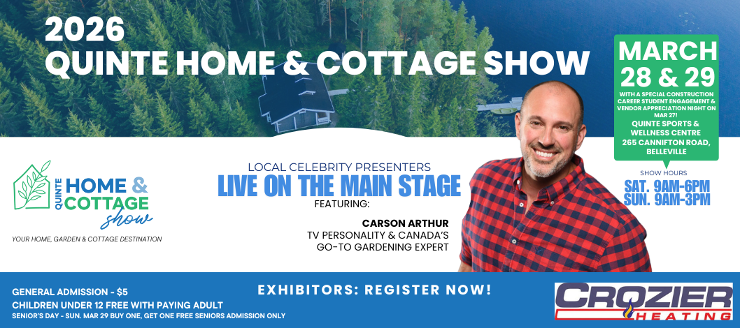 Exhibitors: The Quinte Home & Cottage Show takes place March 28 & 29, 2026 at the Quinte Sports & Wellness Centre and is the destination for home & cottage consumers. We have two full arenas ready to showcase your brand, product or service. We always try to reinvent ourselves at the Show and have exciting new plans this year including a back to basics local theme and pre registration seminars.